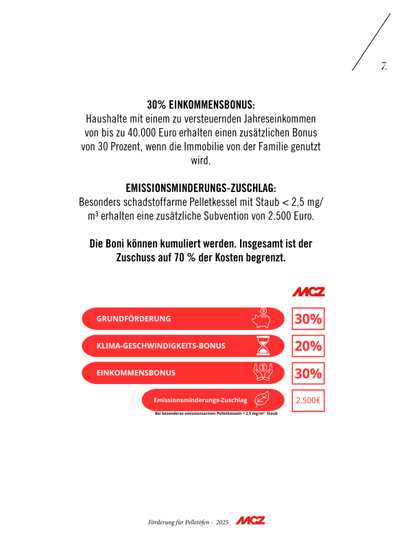 Wussten Sie, dass Sie durch den Kauf eines MCZ-Ofens einen großen Teil Ihrer Ausgaben wieder hereinholen können? Möchten Sie wissen, welche Förderung für Sie am besten geeignet ist?